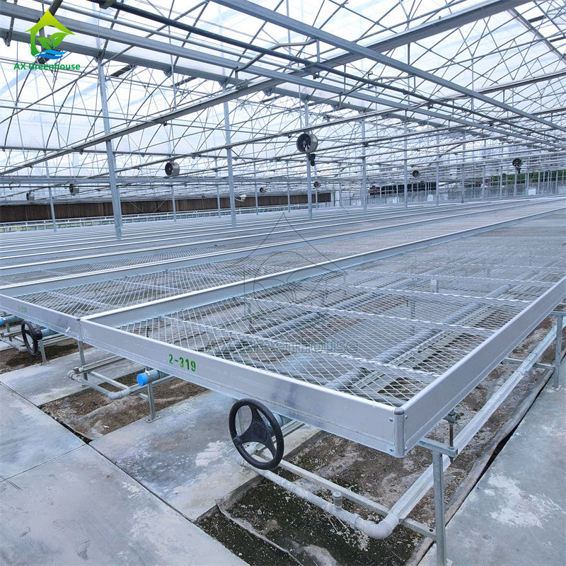 ワイヤーメッシュ育苗床は、溶融亜鉛メッキまたはステンレス鋼線で作られたテーブルトップ構造で、頑丈なサポートフレームと組み合わせています。温室、育苗場、園芸基地での苗の育成に使用されます。亜鉛メッキまたはプラスチック塗装された金属メッシュで作られたテーブルトップは、通気性、光透過性、スムーズな排水性、耐腐食性を提供します。ワイヤーメッシュ育苗床は高さ調節可能で、平らな表面を持ち、強力な耐荷重能力を備えているため、さまざまな苗コンテナや基質に適しています。現代の施設園芸における一般的な育苗装置です。